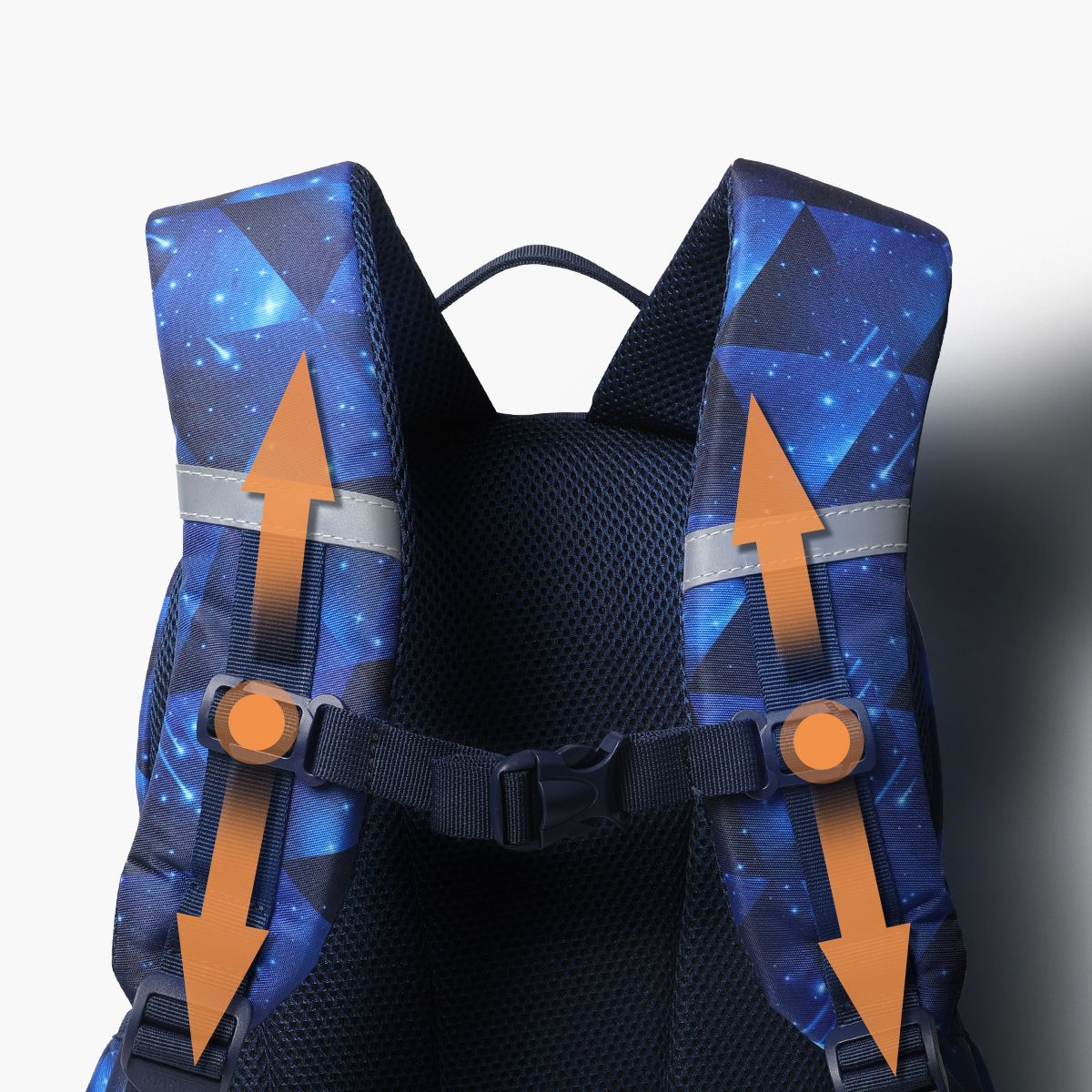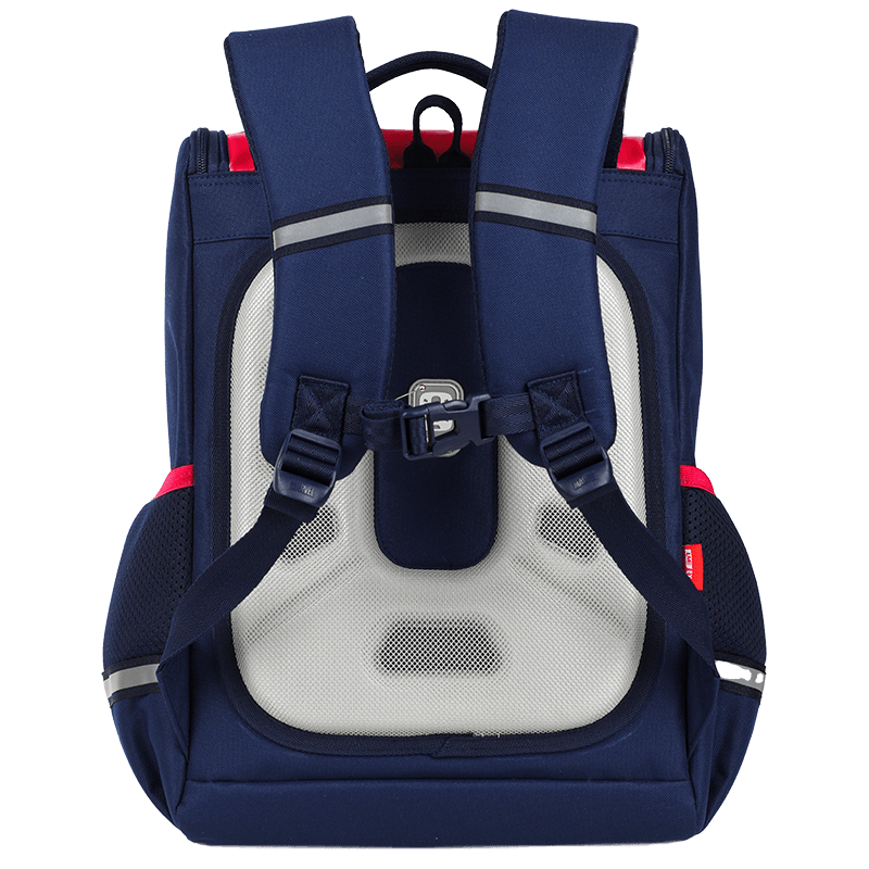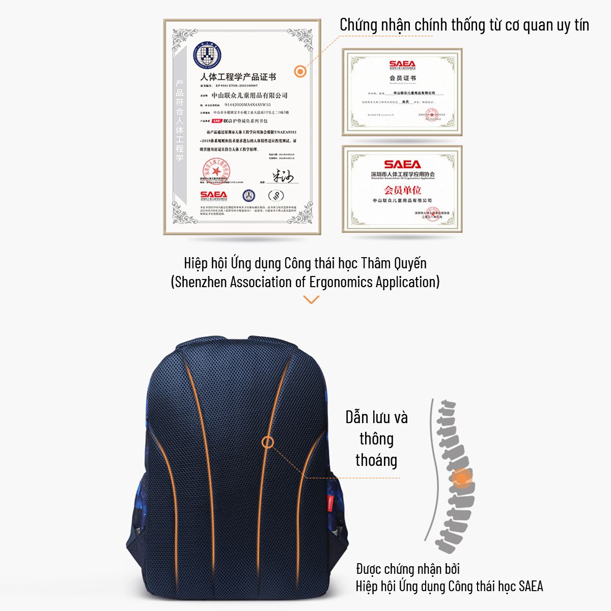 Thiết kế bảo vệ cột sống: Lưng đeo và đệm 3D thoáng khí, đàn hồi, bảo vệ cột sống, kết hợp dây ngực cố định trọng lượng, đảm bảo thoải mái khi đeo. Một số mẫu có dải phản quang tăng độ an toàn cho bé.