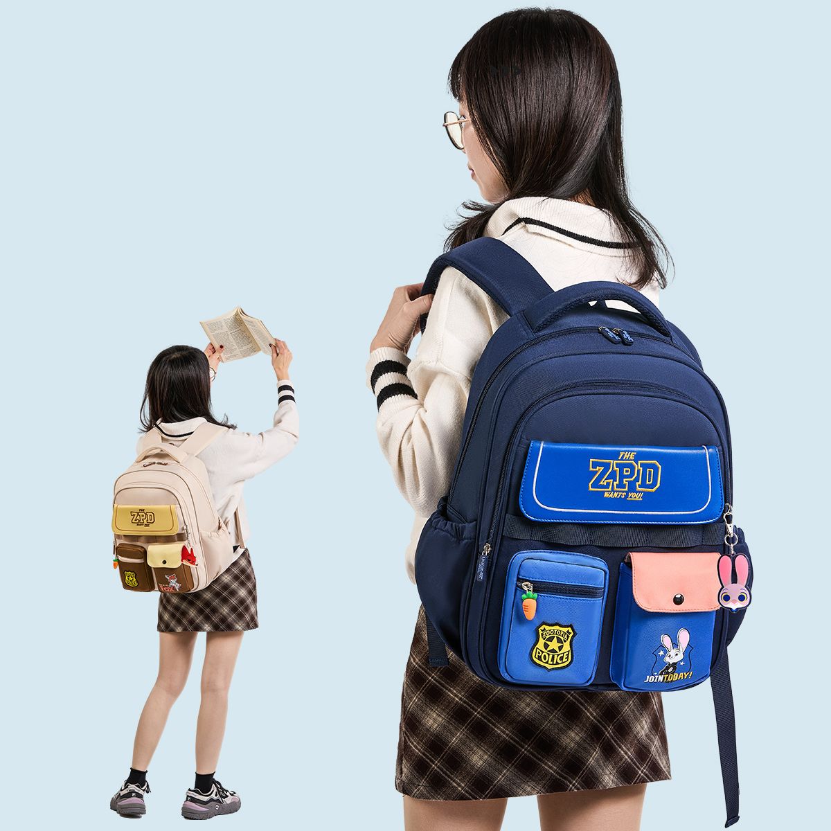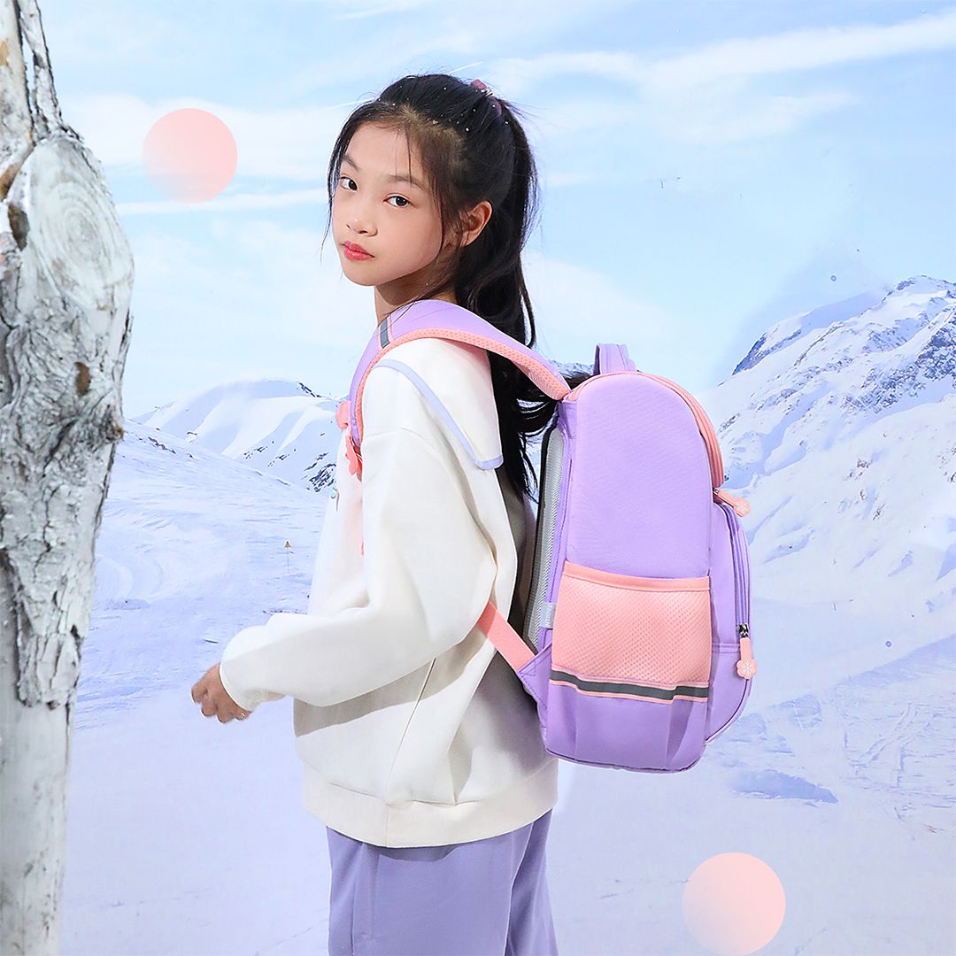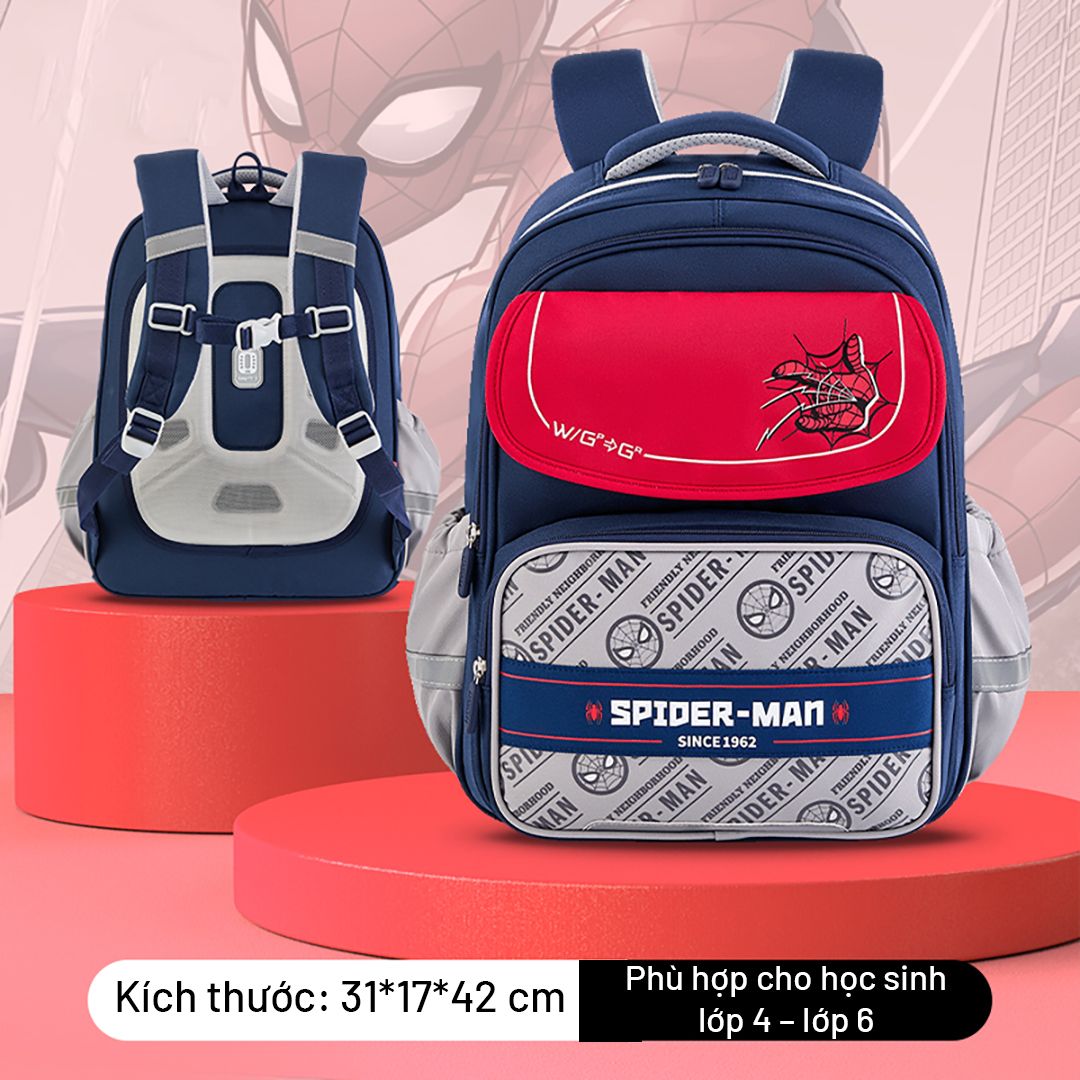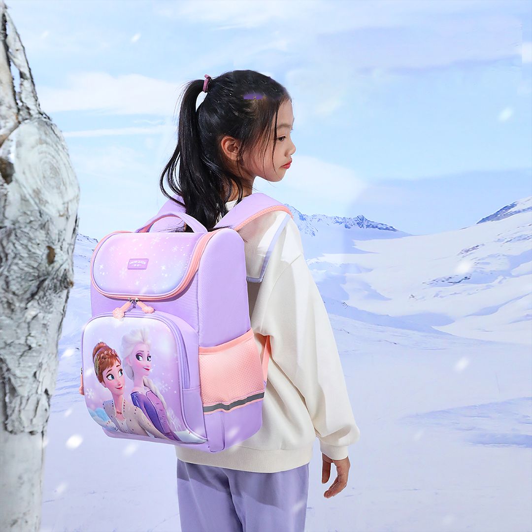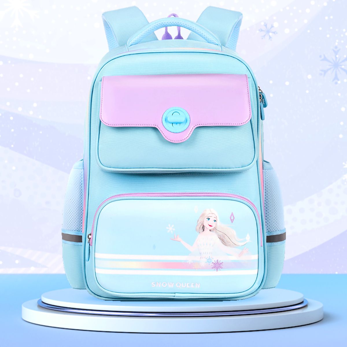 Kích thước & dung tích: Nhỏ gọn nhưng dung tích lớn (từ 26×16×38 cm đến 31×17×42 cm), ngăn chính rộng rãi đựng sách vở, bút; ngăn phụ và ngăn trước có khoá kéo hoặc Velcro đựng thẻ học sinh, tập vở; ngăn bên hông tiện lợi đựng bình nước, ô dù.