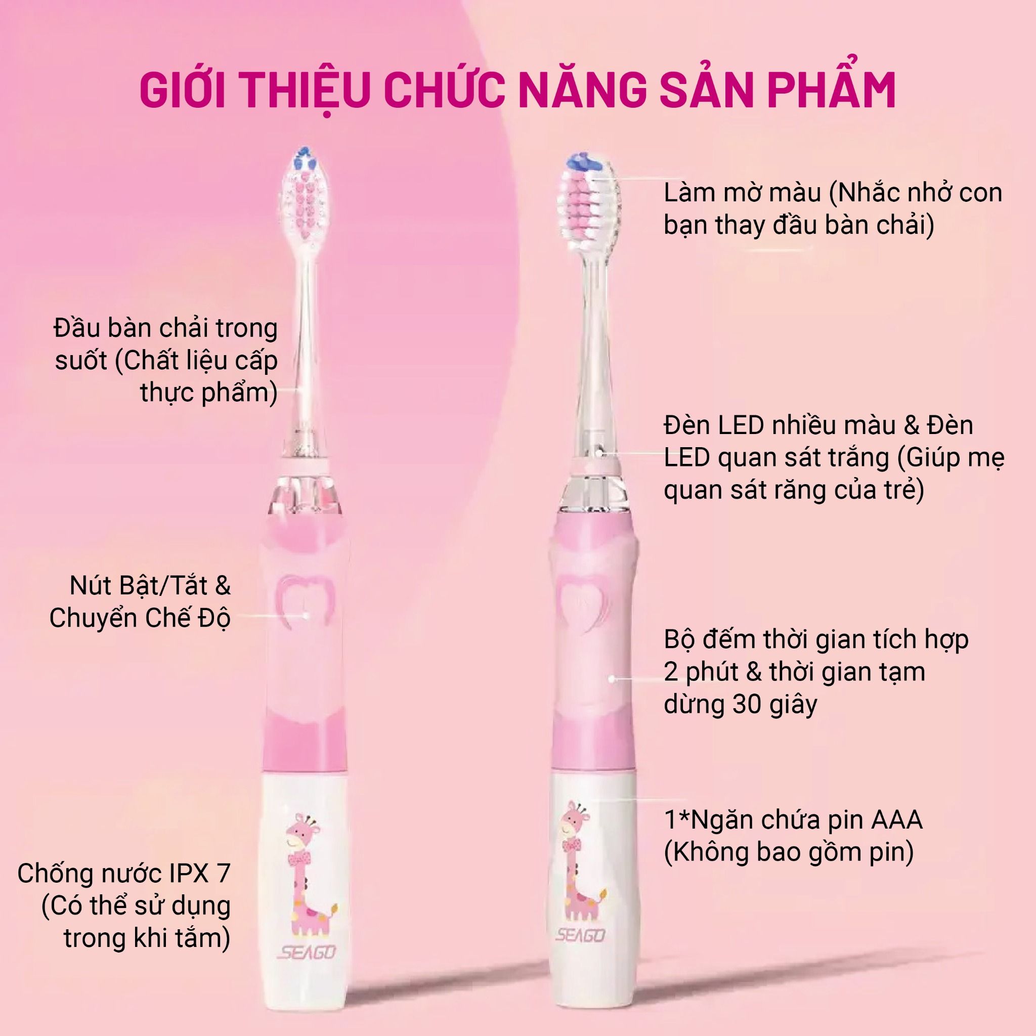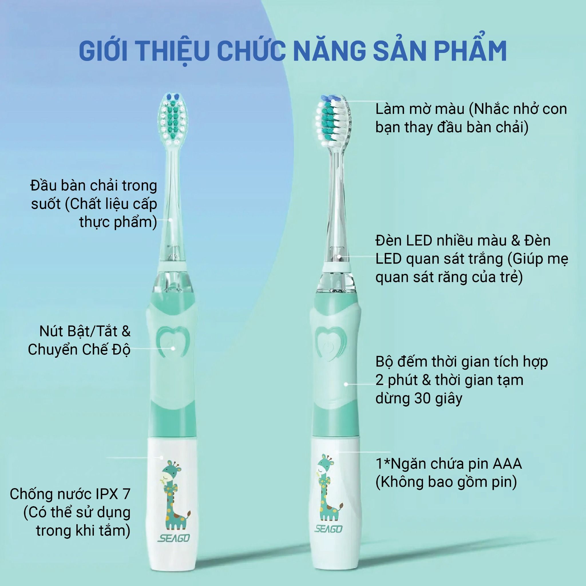 🦷 Bàn Chải Điện Trẻ Em Seago – Bảo Vệ Nụ Cười Mỗi Ngày 🦷