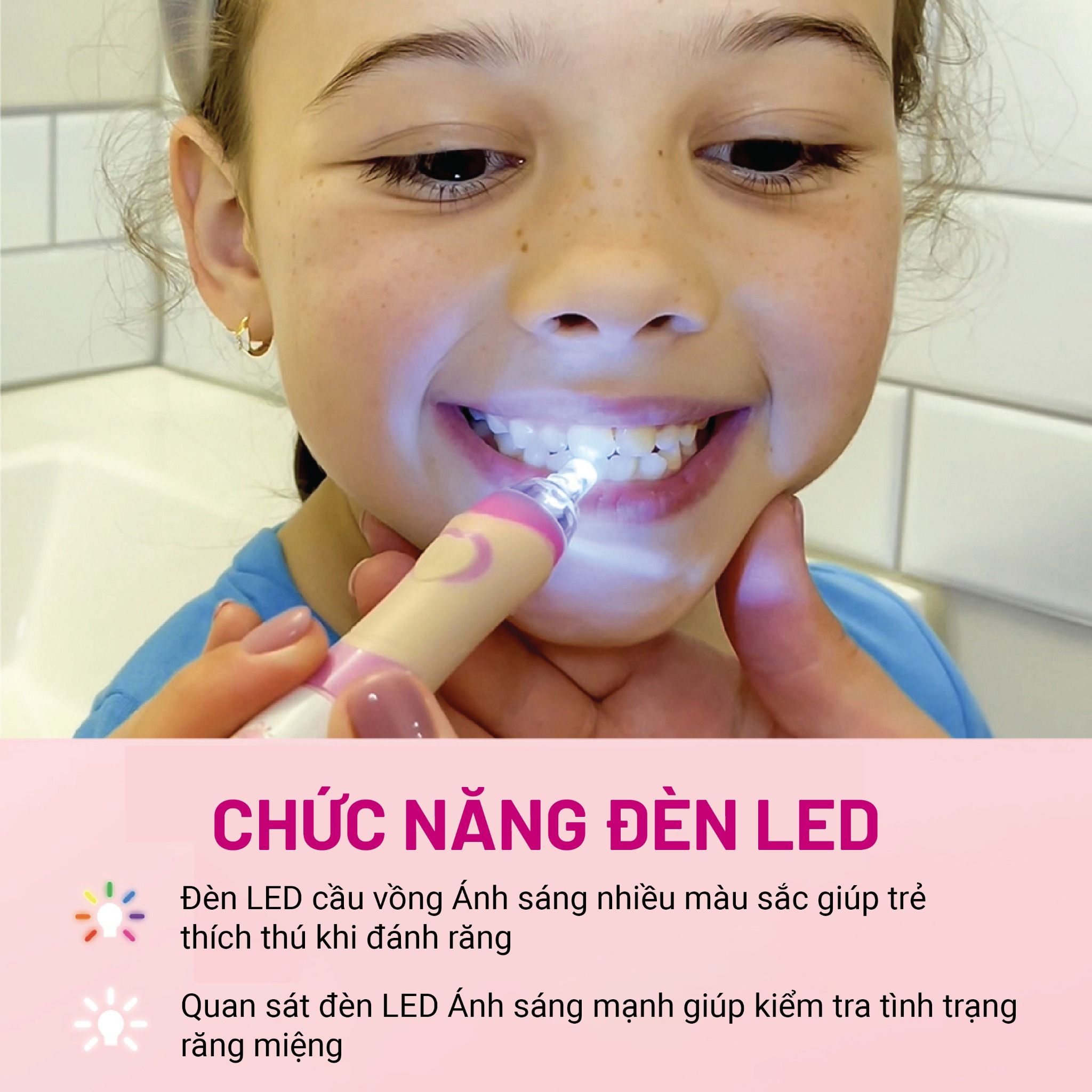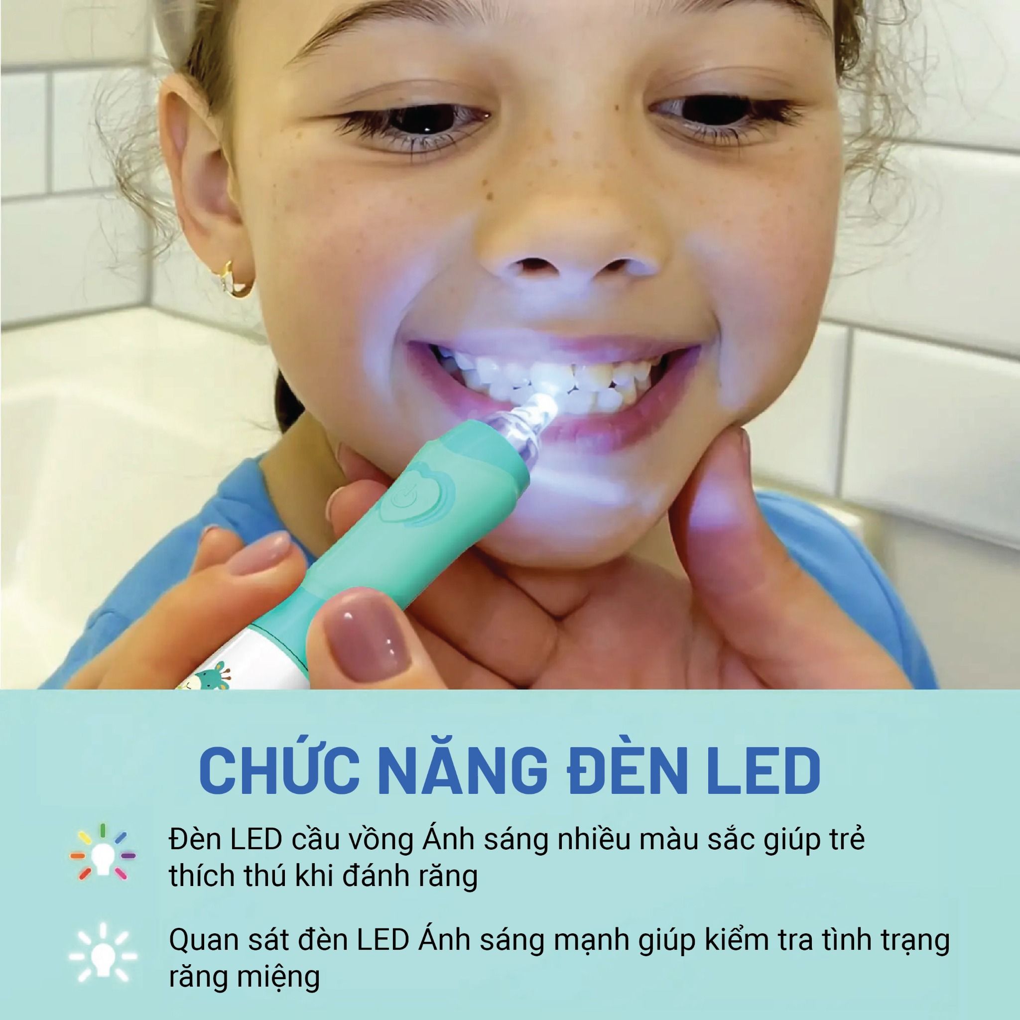 5. Đèn LED trắng giúp mẹ quan sát sự phát triển của răng bé.