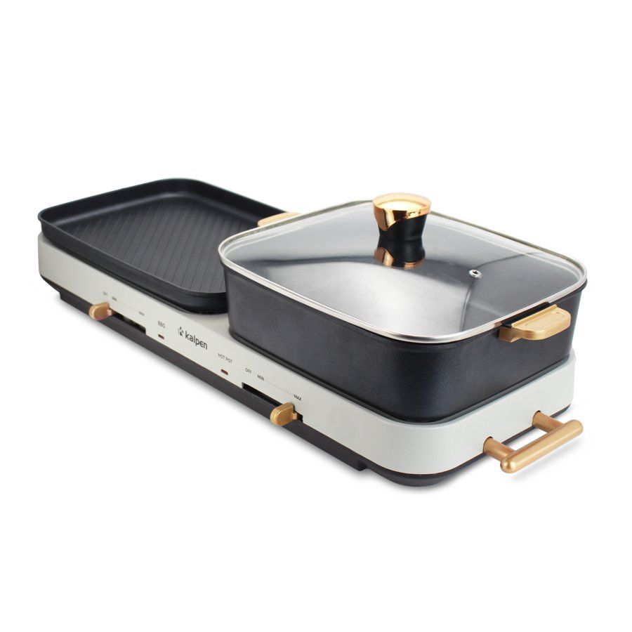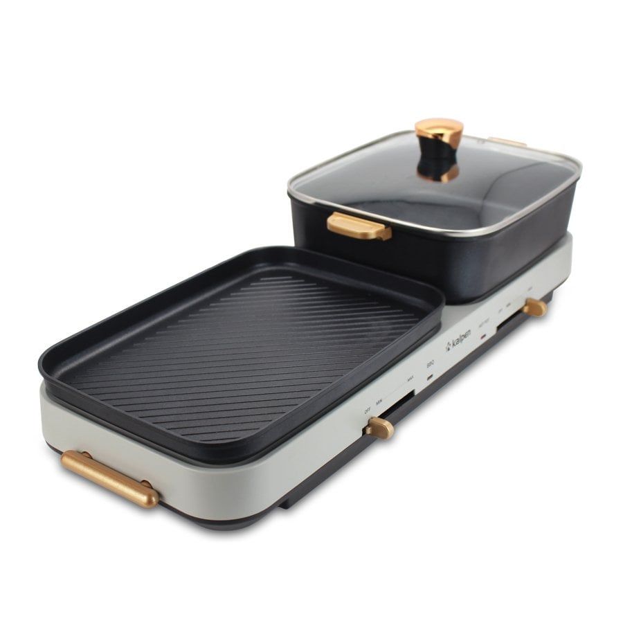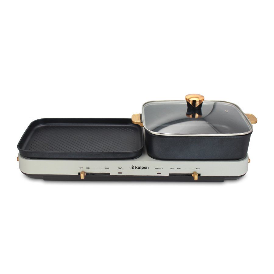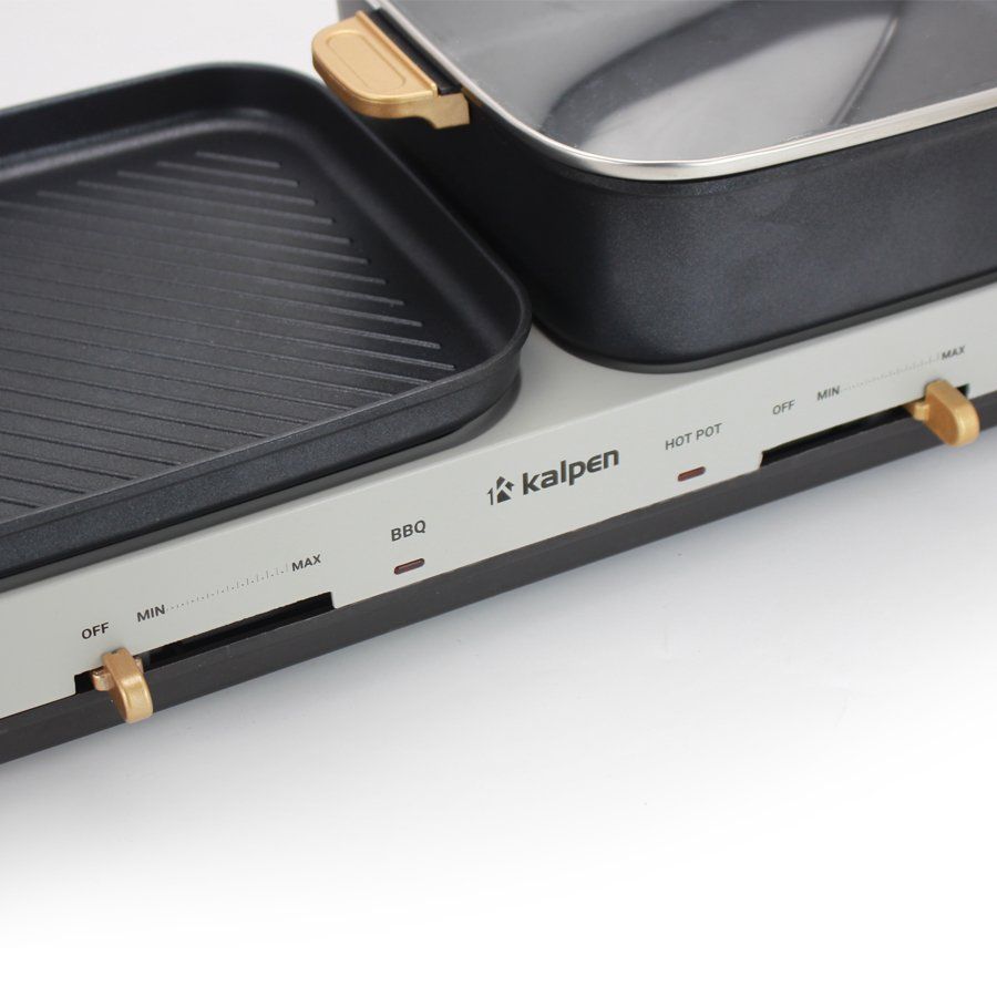 Bếp nướng lẩu đa năng Kalpen PP99 công suất 2200W, thiết kế 2 ngăn độc lập, chất liệu nhôm đúc chống dính Whitford, điều khiển độc lập, tự ngắt điện khi quá nhiệt, dễ vệ sinh.