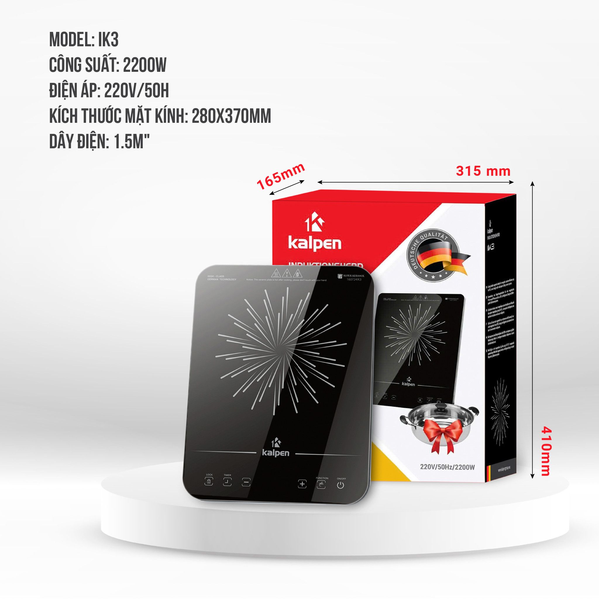 THÔNG SỐ KỸ THUẬT CỦA BẾP TỪ ĐƠN KALPEN IK3