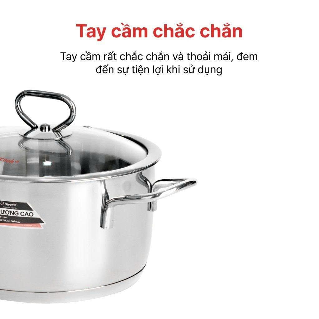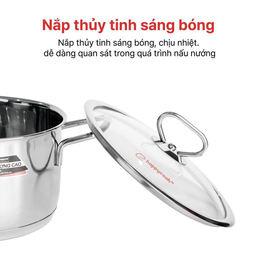 Bộ nồi inox cao cấp 3 đáy nắp kính Happy Cook Delux Plus HC06DLG có thiết kế sang trọng, tinh tế, mang lại nét đẹp hiện đại cho gian bếp của bạn. Nồi có kích thước 16cm, thích hợp để kho thịt cá hoặc nấu cháo số lượng ít.