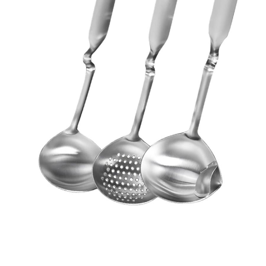 Bộ dụng cụ đầy đủ – Gồm muôi canh, vá, muỗng, môi vớt, xẻng chiên... đáp ứng mọi nhu cầu nấu nướng.