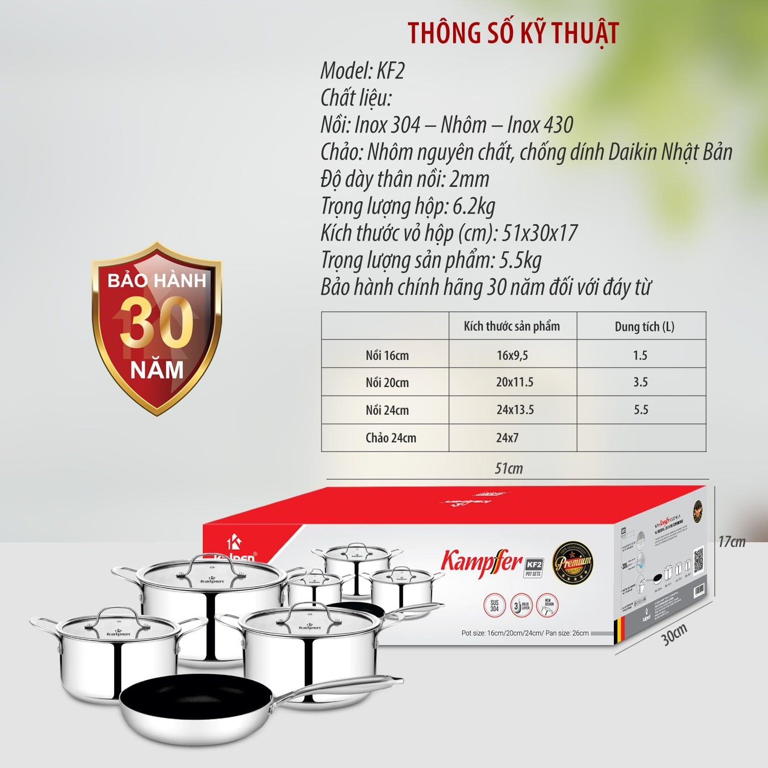 - Nồi 24cm: 24x13.5cm, dung tích 5.5L