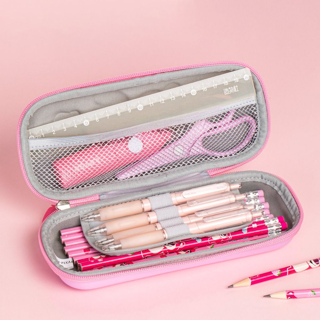 Kích thước & ngăn chứa: Nhiều kiểu dáng từ gọn nhẹ đến hộp chữ nhật rộng rãi (kích thước 90 x 220 x 40 mm đến 226 x 104 x 104 mm), dễ bỏ vào balo hoặc túi xách. Ngăn chứa rộng rãi, đựng bút, thước, gôm, compa, thậm chí cả máy tính mini, giúp đồ dùng học tập luôn gọn gàng.