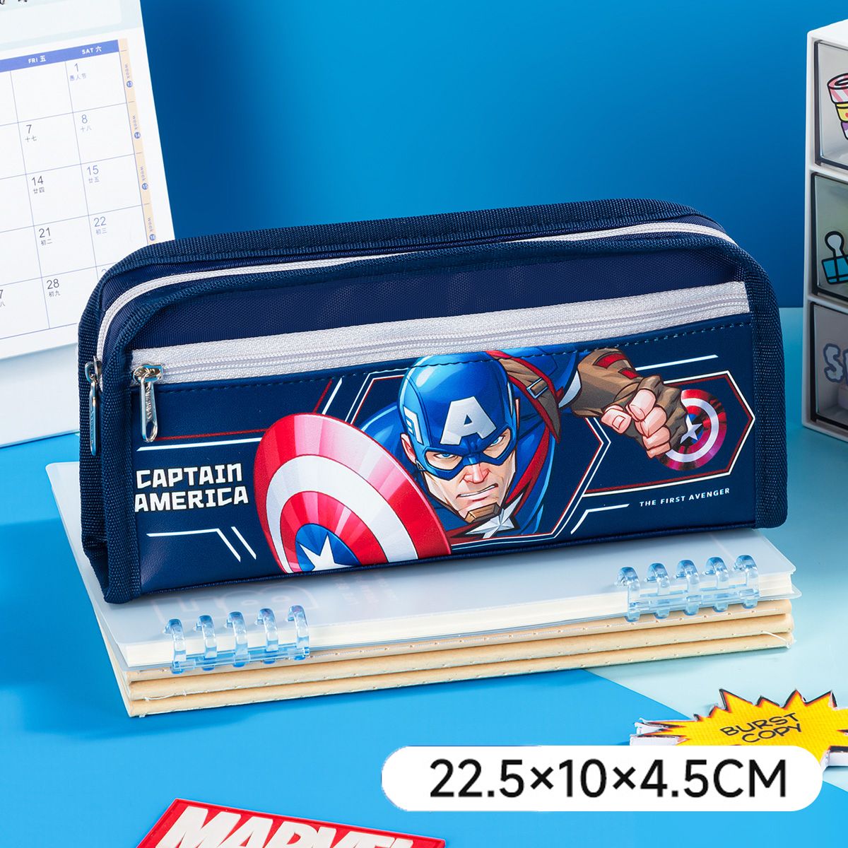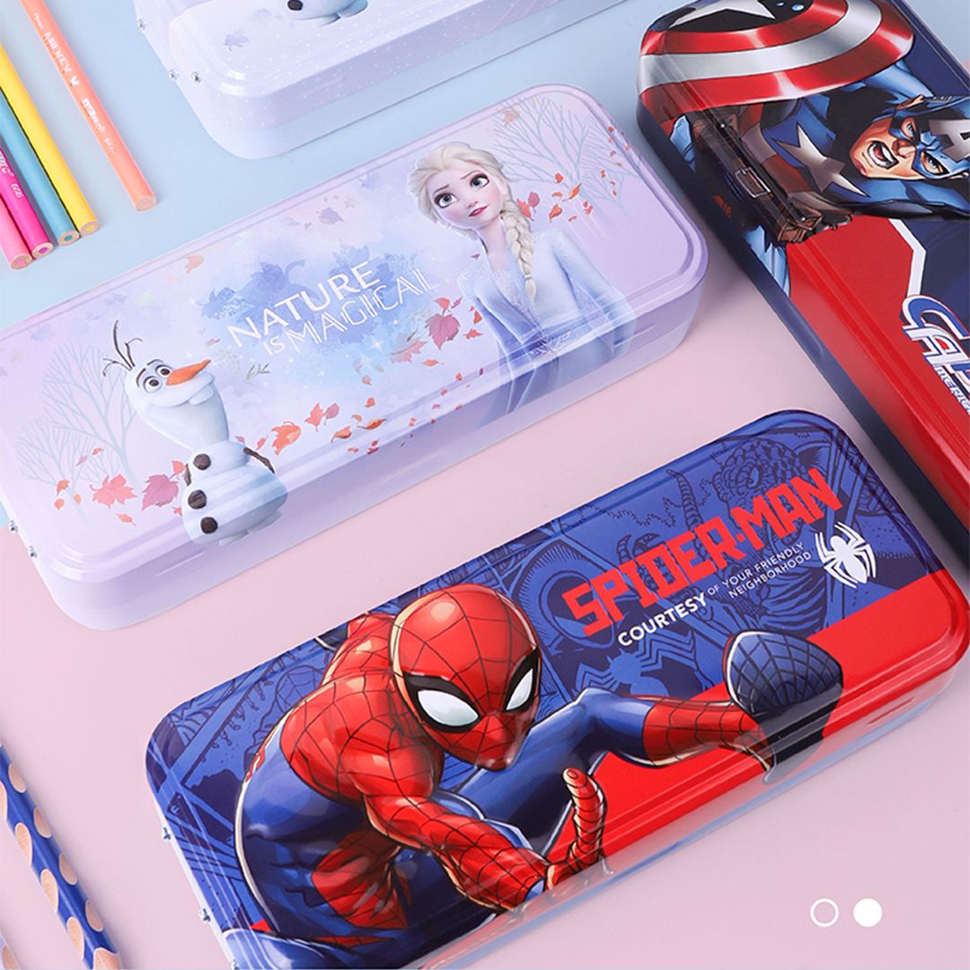 Thiết kế nổi bật & đa dạng: Có nhiều mẫu hoạt hình yêu thích như Elsa, Mickey, Lotso, Spider-Man, Captain America… phù hợp cả bé trai và bé gái. Màu sắc tươi sáng, phối hợp hài hòa, in logo/sản phẩm sắc nét, giữ màu lâu, giúp bé nổi bật khi đến lớp.
