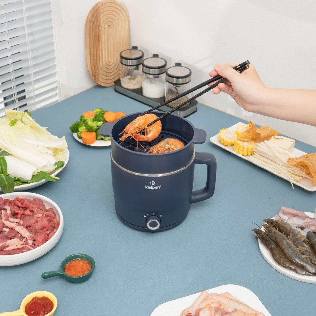 🔥 Ca Lẩu Điện Mini Kalpen 1.8L – Đa Năng, Có Khay Hấp, Tiện Lợi