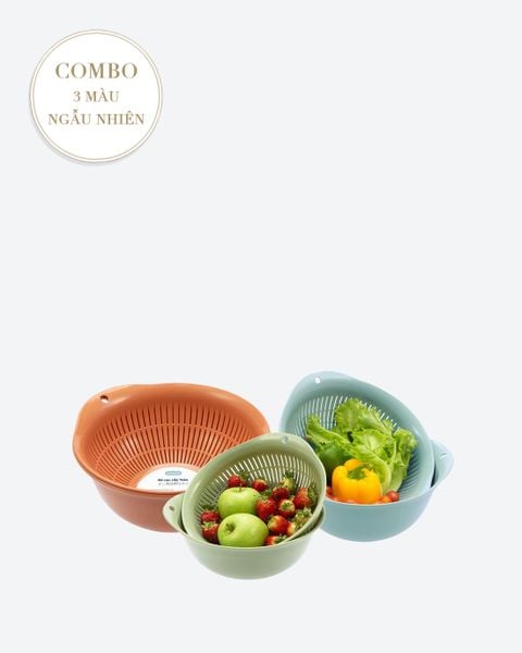 Sản phẩm thau rổ kết hợp trong 1 bộ, tiện dụng khi đựng nước rửa rau và vắt nước để ráo.