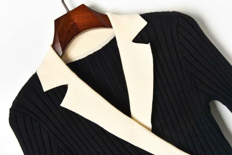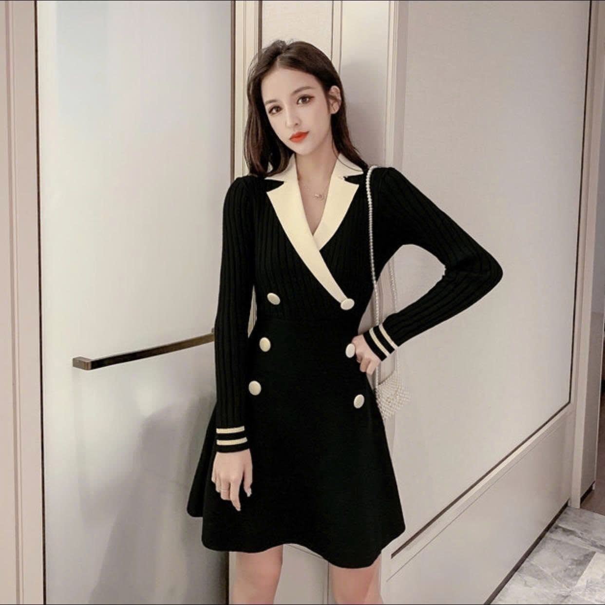 🖤 Đầm Đen Dệt Kim Khuya Trắng – DRE002022 (Freesize)
