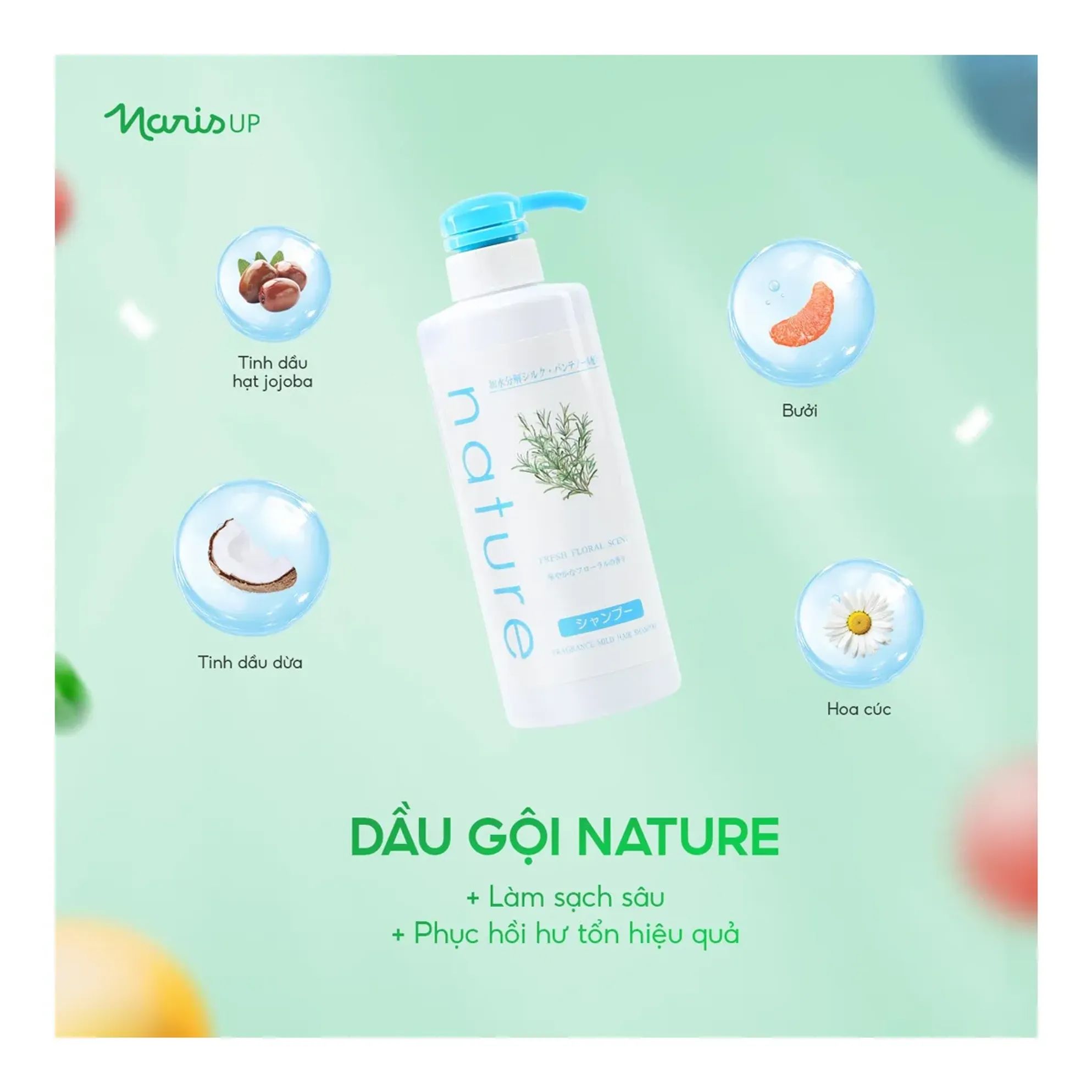Dầu gội NATURE - HAIR SHAMPOO là một sản phẩm dành cho chăm sóc tóc bị hư tổn. Sản phẩm này chứa các thành phần chiết xuất từ thiên nhiên như tinh dầu hạt jojoba, tinh dầu bơ hạt mỡ, tinh dầu hạt cọ, dầu ô liu và dầu gấc, giúp nuôi dưỡng, bảo vệ và phục hồi tóc khỏe mạnh hơn.