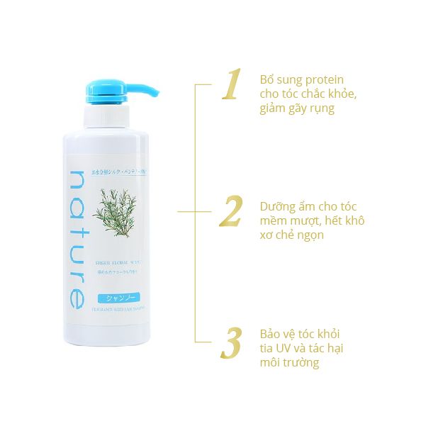 Các thành phần trong dầu gội NATURE - HAIR SHAMPOO có tính chất dưỡng ẩm, giúp giữ cho tóc luôn mềm mượt, chống lại các tác nhân gây hại cho tóc như tia UV, nhiệt độ cao, hóa chất trong mỹ phẩm và khói bụi ô nhiễm. Sản phẩm cũng có khả năng làm sạch tóc hiệu quả mà không làm mất đi dầu tự nhiên của tóc.