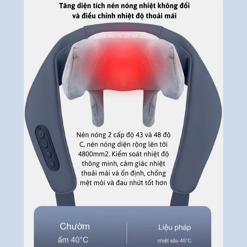 độ thoải mái : Nén nóng 2 cấp độ 43 và 48 độ C, nén nóng diện rộng lên tới