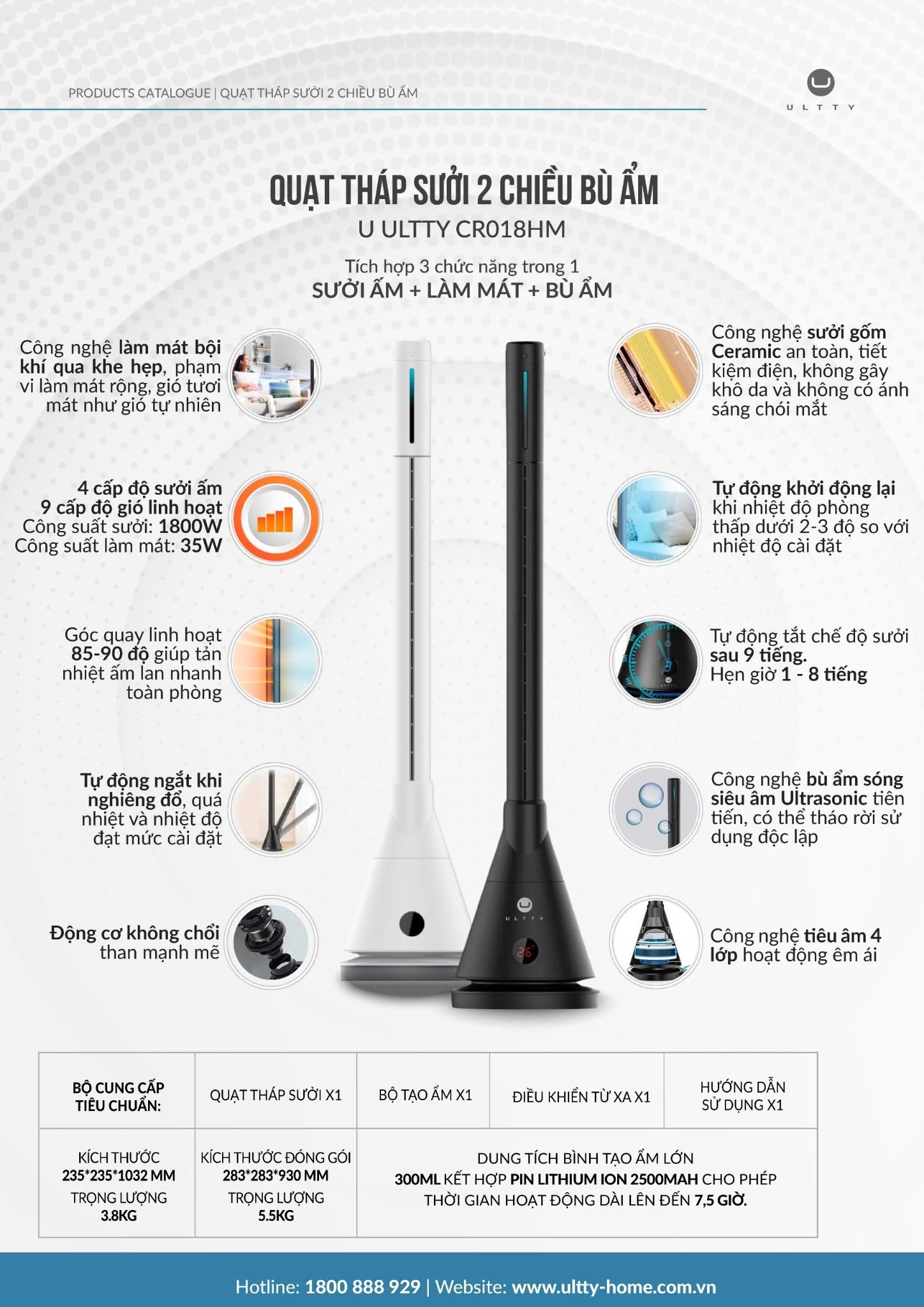 • Công nghệ bù ẩm sóng siêu âm Ultrasonic tiên tiến đem đến hơi ẩm siêu nhỏ mịn
