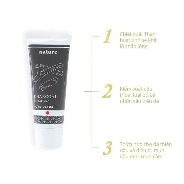 Sữa Rửa Mặt Se Khít Lỗ Chân Lông Naris Nature Charcoal với tác dụng làm sạch sâu, kiểm soát lượng bã nhờn, loại bỏ các tác nhân gây mụn và hỗ trợ se khít lỗ chân lông, trả lại cho bạn làn da sạch mịn và khỏe mạnh.