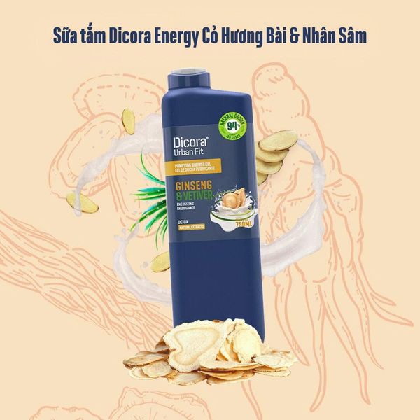 Sữa tắm với chiết xuất cỏ Vetiver và nhân sâm giúp làm sạch da, mang lại cảm giác sảng khoái, tươi mới.