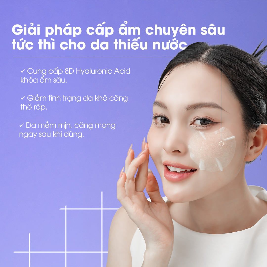 1. Cấp ẩm đa tầng với 8D Hyaluronic Acid: