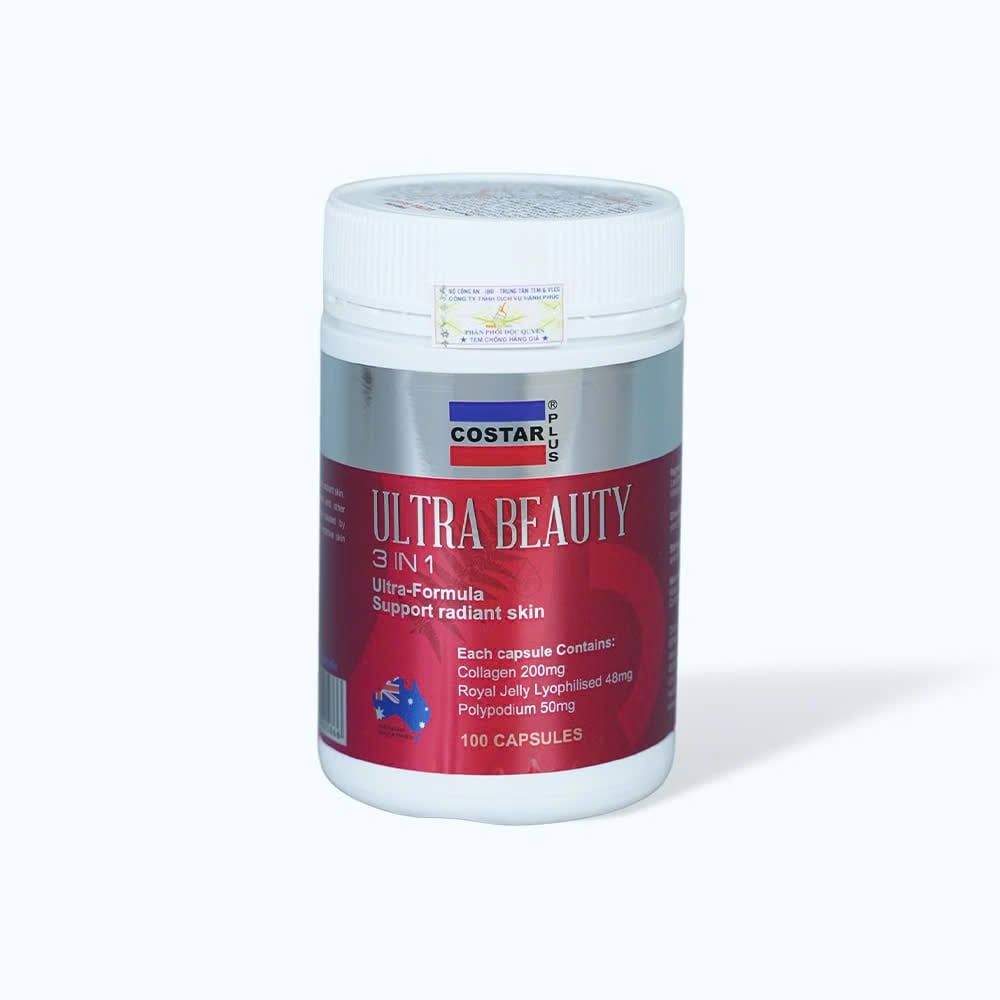 Viên uống Costar Plus Ultra Beauty 3 in 1 là một loại thực phẩm chức năng có tác dụng hỗ trợ làm đẹp da, chứa các thành phần dưỡng chất giúp cải thiện sức khỏe và vẻ ngoài của da.